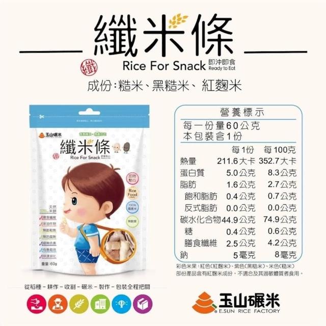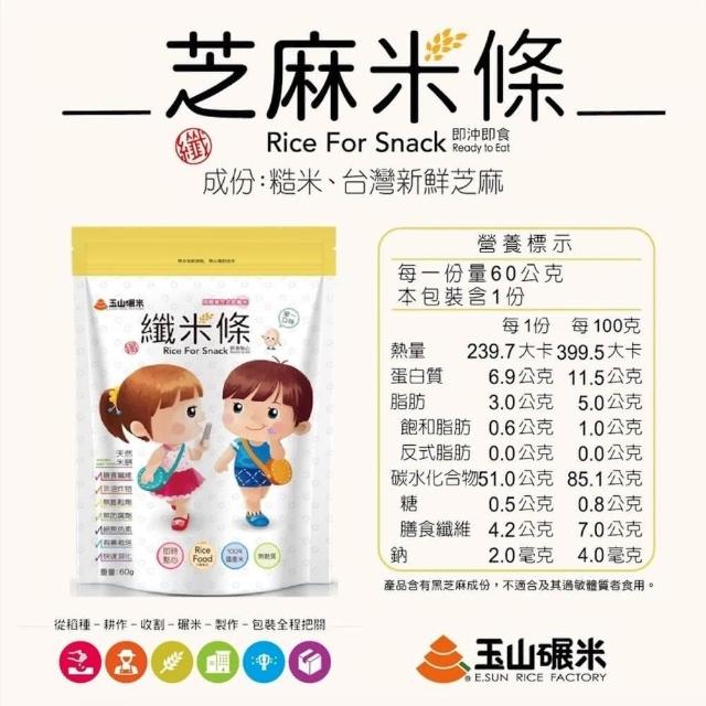 玉山碾米 無麩質米餅-綜合纖米條60g/芝麻纖米條60g 100%純米 即時點心 無色素 非油炸 寶寶米餅