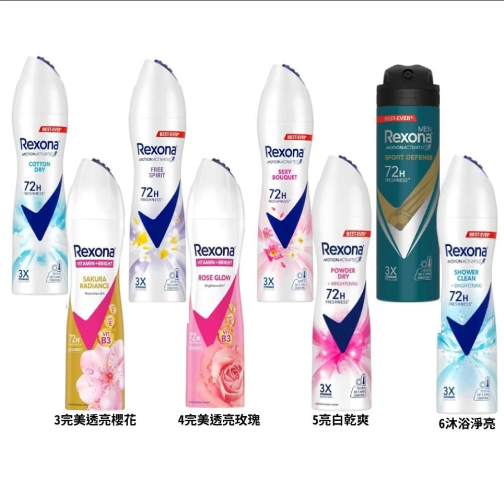 Rexona 蕊娜蕊娜制汗爽身噴霧 止汗劑(清新舒棉/沐浴淨亮/亮白乾爽/自由舒暢/完美透亮櫻花/完美透亮玫瑰/魅惑香氛/運動乾爽)