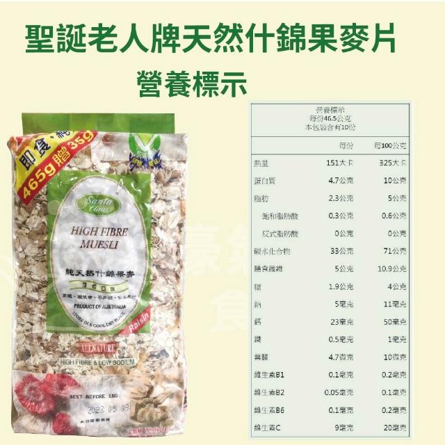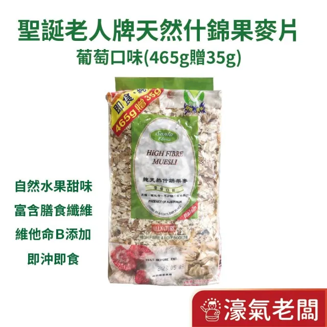聖誕老人牌 純天然什錦果麥片穀片-葡萄口味(465g贈35g)燕麥片 玉米片 葵花子 杏仁 葡萄乾 椰棗
