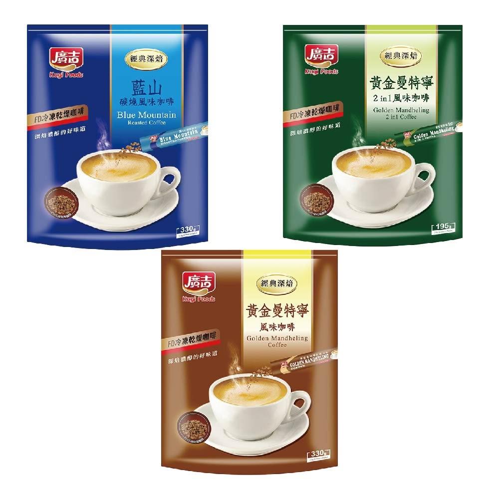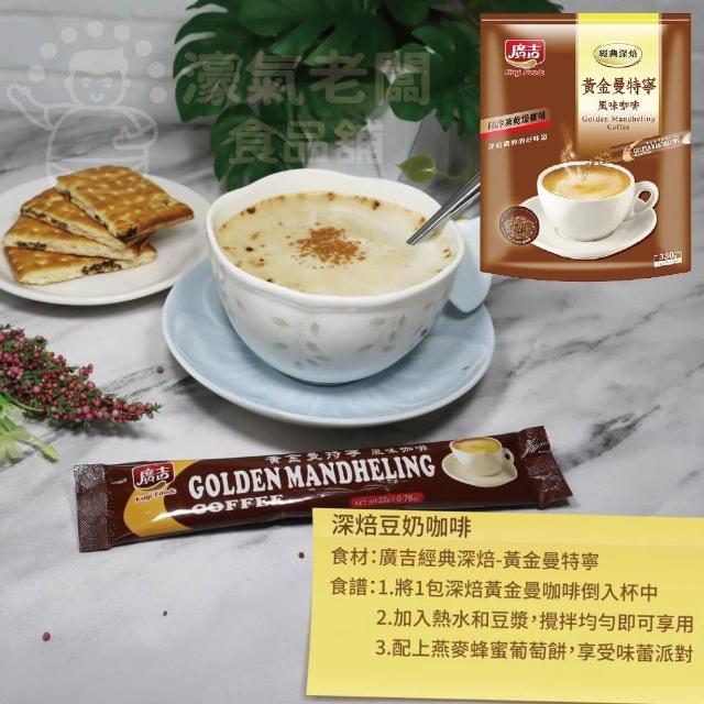 廣吉經典深焙即溶咖啡 藍山碳燒咖啡頂級黃金曼特寧(三合一咖啡)黃金曼特寧二合一咖啡(15入/袋)