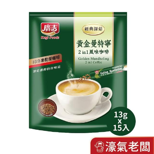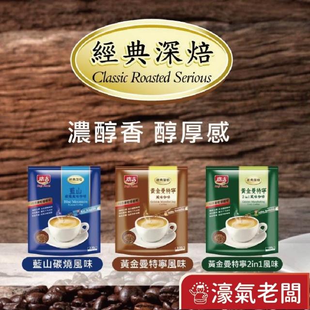 廣吉經典深焙即溶咖啡 藍山碳燒咖啡頂級黃金曼特寧(三合一咖啡)黃金曼特寧二合一咖啡(15入/袋)