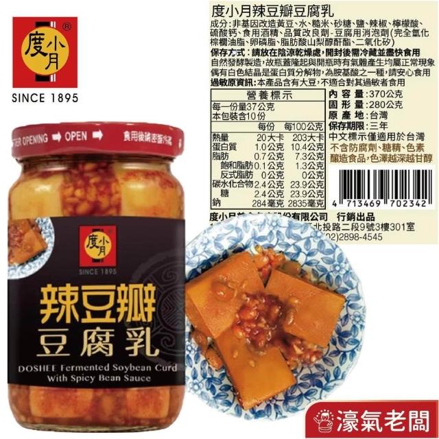 度小月度小月臺南豆腐乳四口味 酒釀 紅麴 辣豆瓣 麻油 330g-370g 拌飯拌麵 手工製造