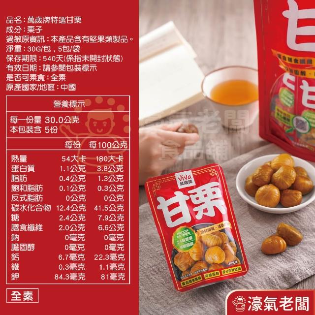 萬歲牌萬歲牌特選甘栗(30gX5包/袋) 隨手包 栗子 零食 嘴饞推薦