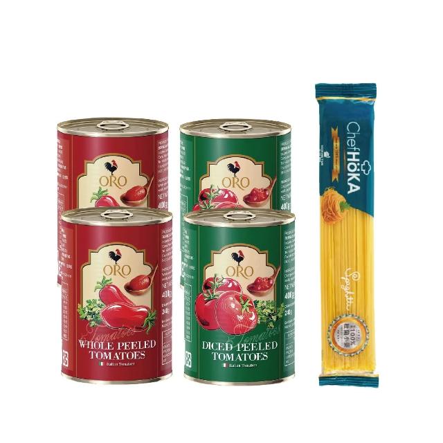 義大利ORO去皮整顆蕃茄 去皮切丁蕃茄罐頭400g 特惠組贈荷卡義大利麵 調理用 燉飯 清炒