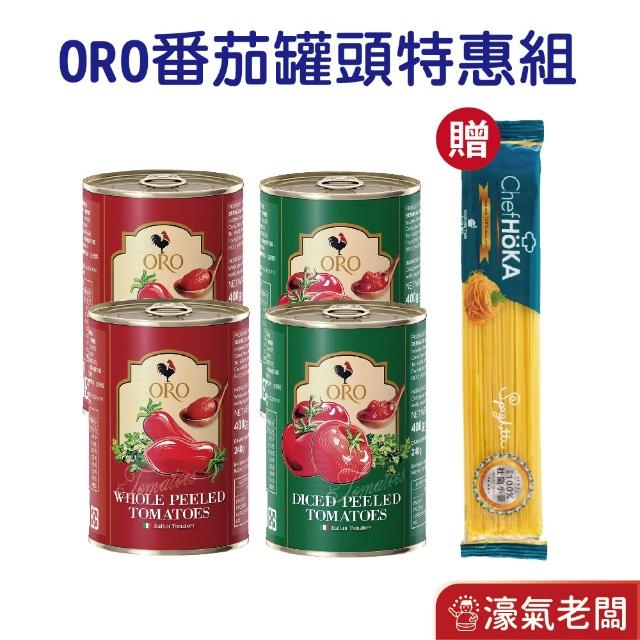 義大利ORO去皮整顆蕃茄 去皮切丁蕃茄罐頭400g 特惠組贈荷卡義大利麵 調理用 燉飯 清炒