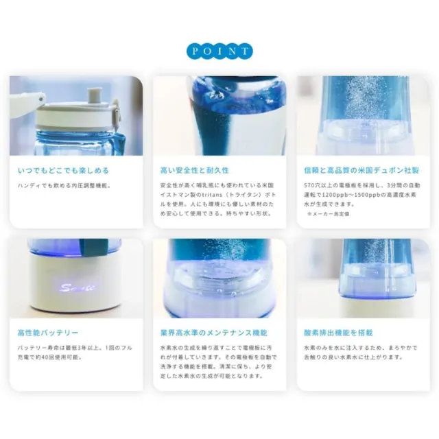 日本 Soyoshi Sante 多功能攜帶型氫氧分離水素水杯 富氫水杯 水素水生成器