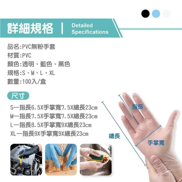 小誠購物PVC無粉手套 100入/盒(三色可選/透明/藍/黑/衛生手套/拋棄式手套/塑膠手套)