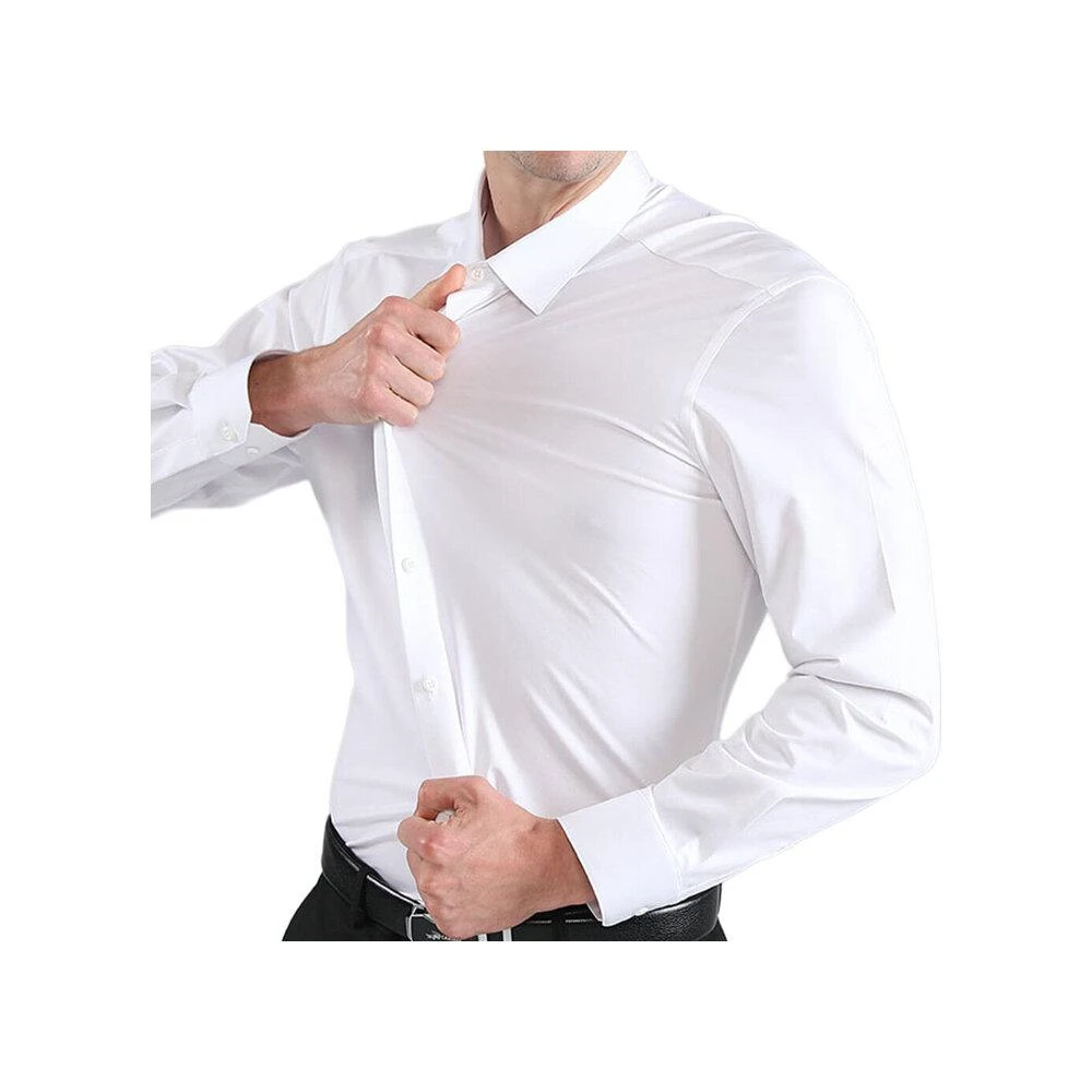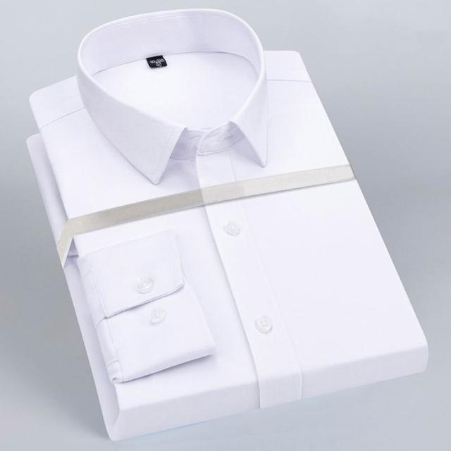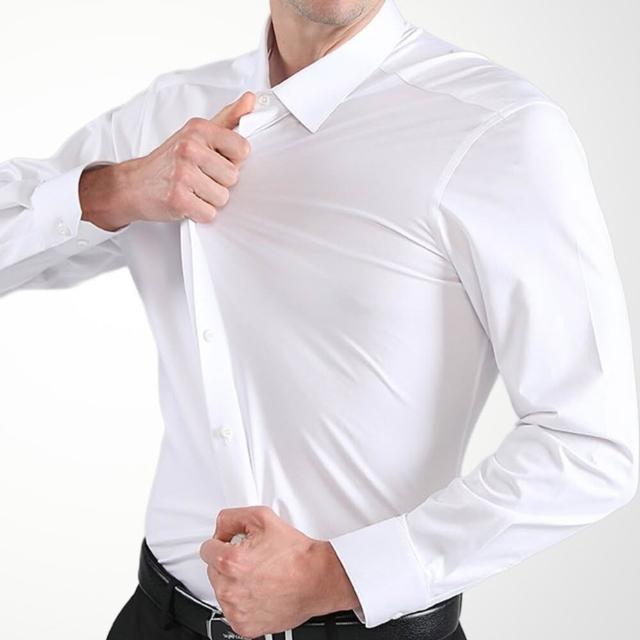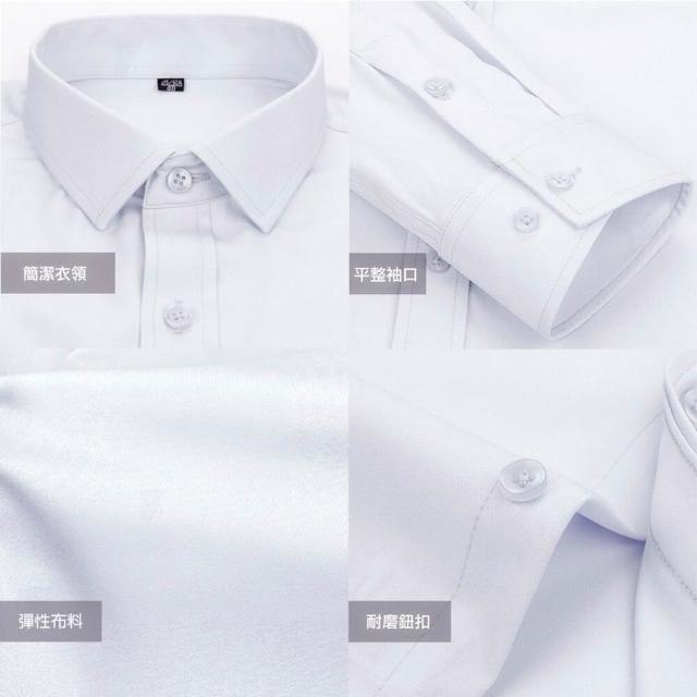 機能彈性襯衫-長袖 素色白 無