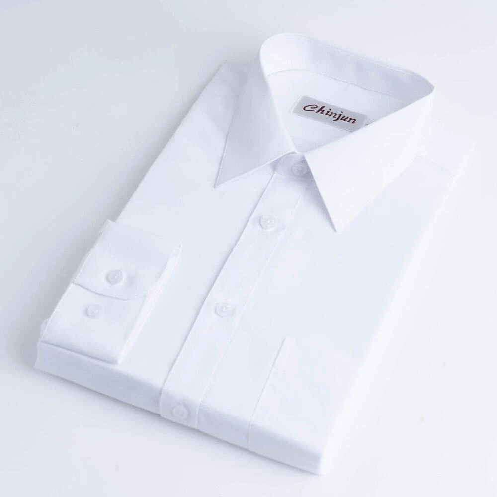 CHINJUN勁榮抗皺襯衫-長袖、素色白、8001 台灣現貨 男襯衫 商務 口袋 硬領