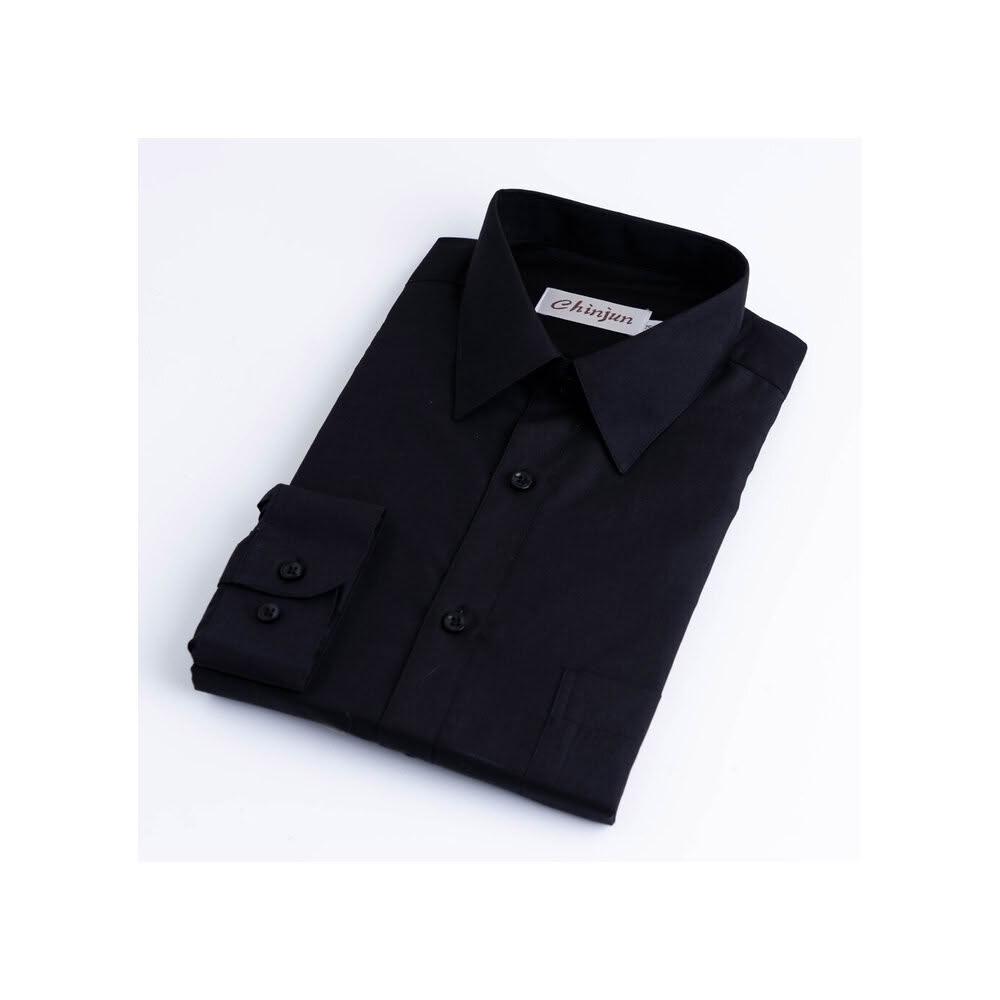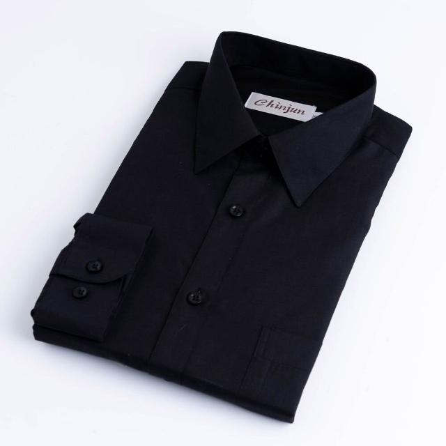 CHINJUN勁榮抗皺襯衫-長袖、素色黑、8017 台灣現貨 男襯衫 商務 口袋 硬領
