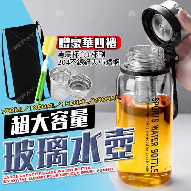 wepay大容量玻璃水壺-750ml(贈專屬杯套 茶漏 杯刷 水壺 玻璃水壺 水瓶 耐熱 )