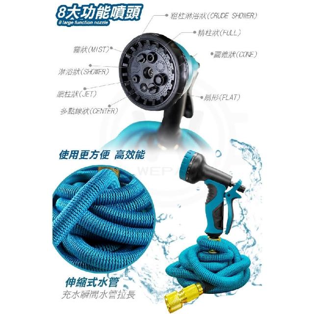 wepay高壓彈力伸縮水管【7.5/10/15/30米】(高壓水管 彈力水管 噴槍 附八段水槍)