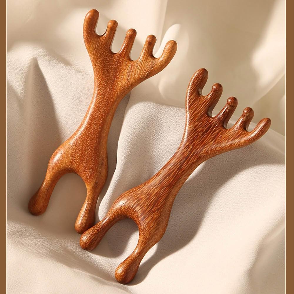 wepay檀木經絡按摩梳 鹿角多功能按摩梳 (刮痧板 按摩梳 頭皮按摩 原木梳 寬齒檀香木梳)