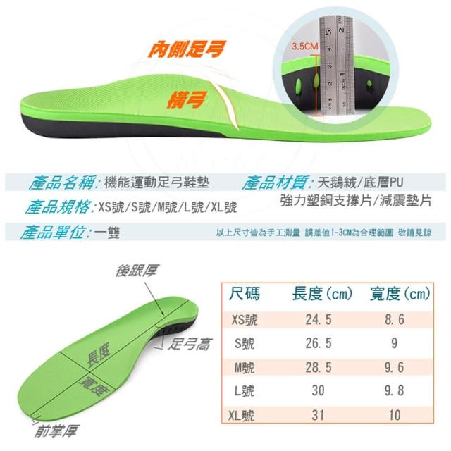 wepay機能運動足弓鞋墊-黑/綠XS-XL(機能運動鞋墊 腳底避震減壓 籃球鞋墊 鞋墊)