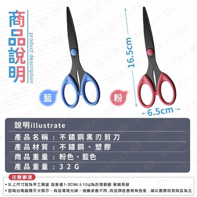 wepay不鏽鋼黑刃剪刀-紅/藍手柄(事務剪刀 美工剪刀 黑色剪刀 文書剪 不銹鋼剪刀 文具辦公)