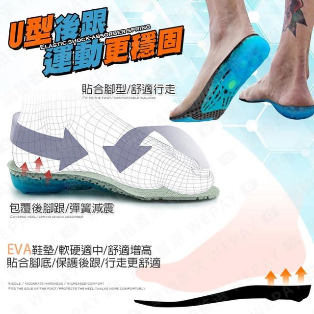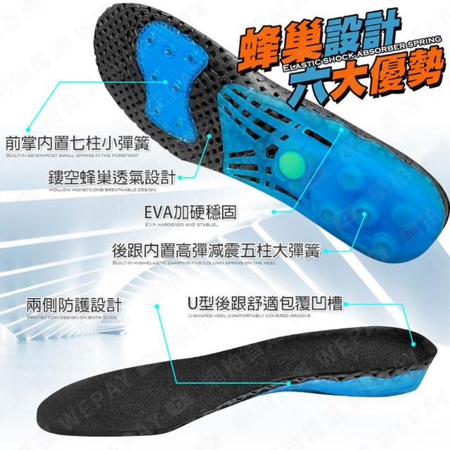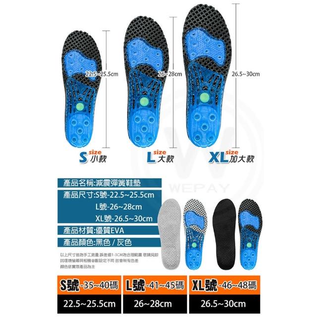 wepay減震彈簧鞋墊-黑/灰(透氣運動鞋墊 增高 減壓 氣墊 登山鞋墊 緩衝鞋墊)