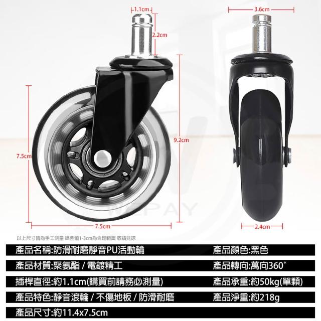 wepayPU活動輪 (辦公椅活動輪 PU活動輪 活動腳輪 電腦椅輪子 靜音輪 萬向輪 推車輪 椅輪 3寸腳輪 辦公椅輪)