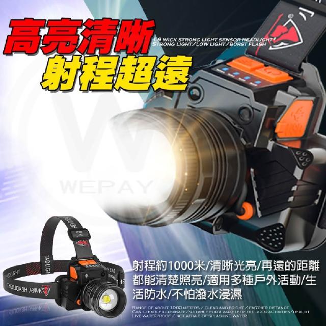 wepayL9強光感應頭燈(頭燈 感應頭燈 單筒頭燈 變焦頭燈 探照燈 充電頭燈 釣魚 登山頭燈)