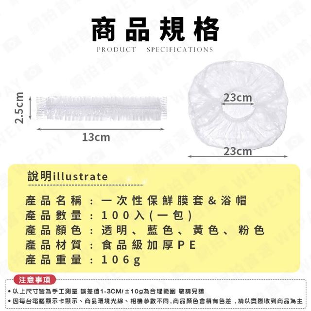 wepay保鮮膜套 【100入】 一次性浴帽 (加厚PE 高彈力 一次性保鮮膜套 保鮮膜 保鮮蓋 浴帽 頭套 染髮 保鮮套)
