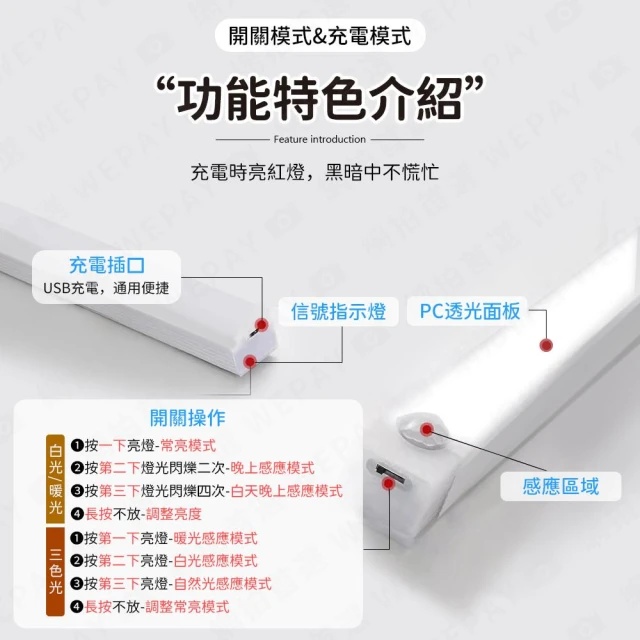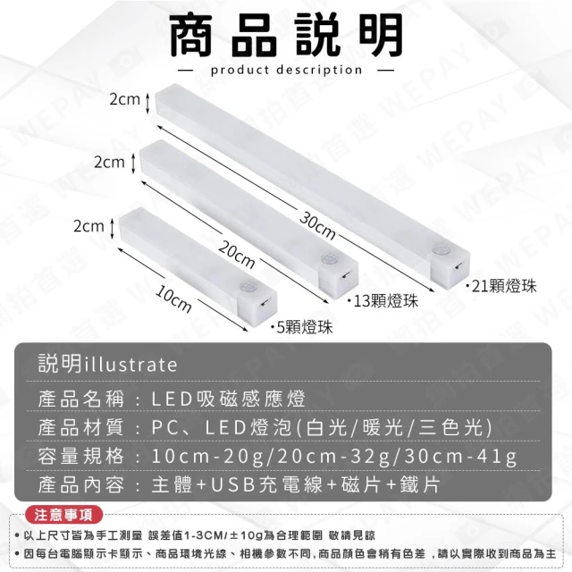 wepayLed磁吸感應燈-10/20/30cm (人體感應燈 LED感應燈 小夜燈 露營燈 燈條 LED燈 櫥櫃燈 感應燈管 USB燈 照明燈 感應燈)