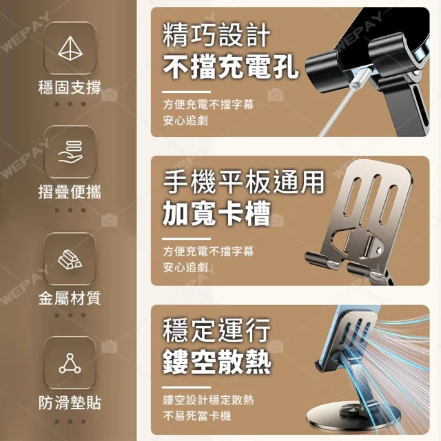 wepay金屬旋轉手機支架 桌上型支架 折疊手機架 手機平板通用支架 金屬支架 追劇直播 手機架