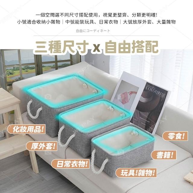 wepay棉麻收納籃 收納籃 置物籃 衣物收納籃 衣物籃 折疊收納籃 無印風衣物收納盒 素色收納籃