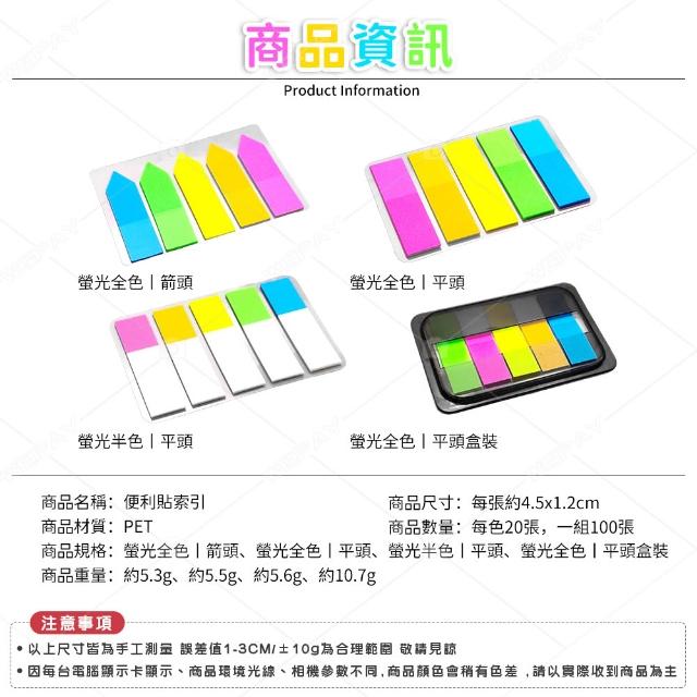 wepay索引便利貼 索引貼 螢光便利貼 分類標籤貼 平頭 箭頭 N次貼 備忘貼 筆記標記貼 100張