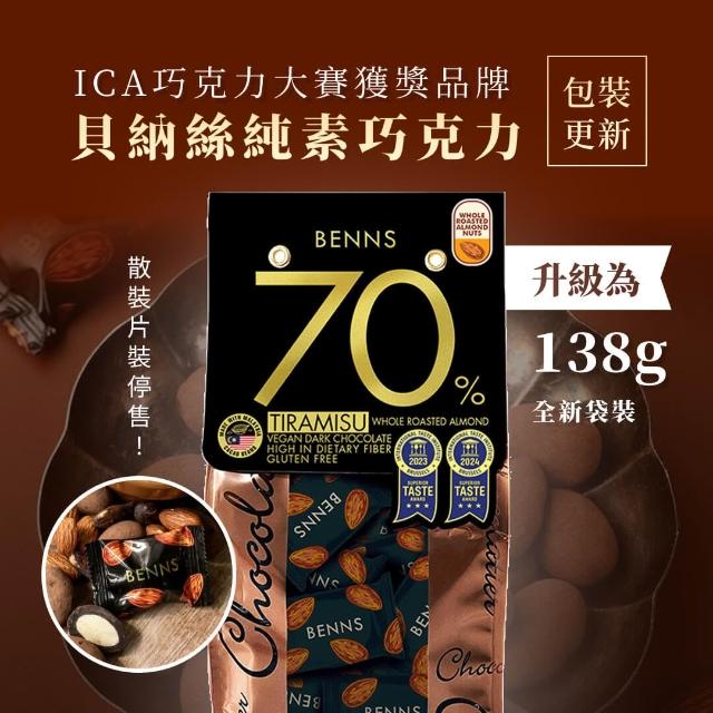 ICA巧克力大賽品牌70% 提拉米蘇整顆烤杏仁黑巧克力 單顆包裝 - BENNS 貝納絲 純素 純天然(杏仁黑巧克力)