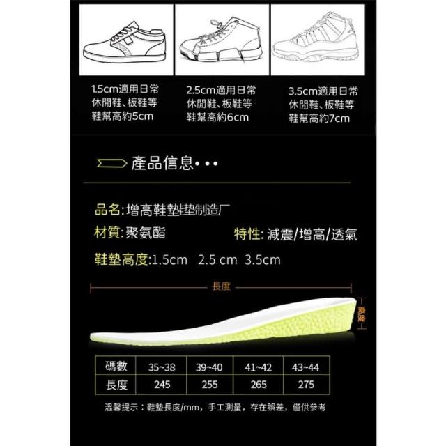 FALAMILA LMLboost內增高鞋墊運動減震增高/透氣吸汗/軟高彈綠底隱形墊