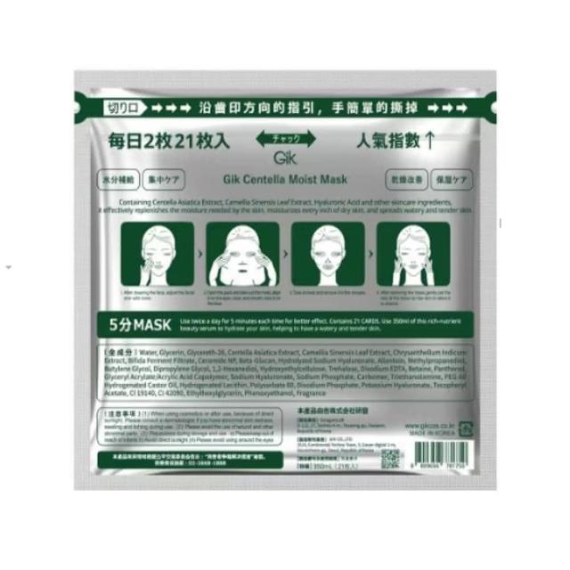 Gik韓國 Gik 積雪草舒緩保濕面膜 350ml 21片/包 容量升級版