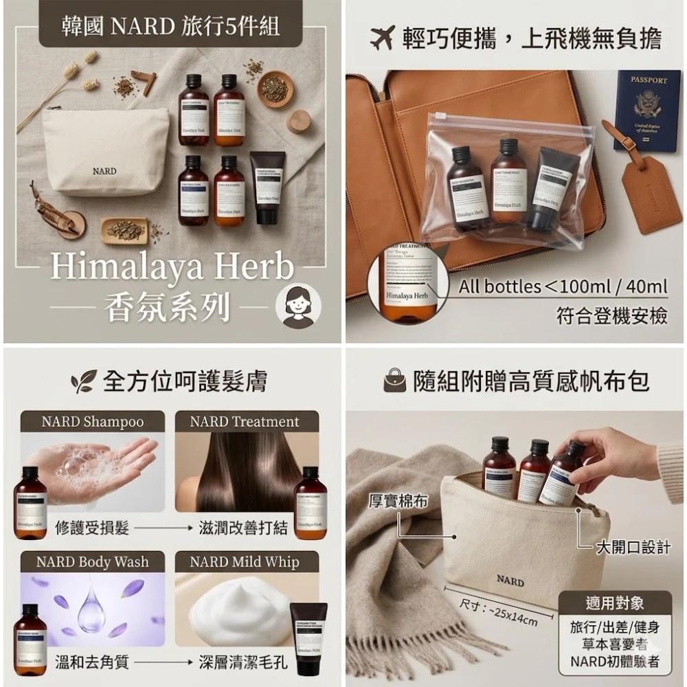 韓國 NARD 旅行5件組 洗護髮沐浴潔顏乳液