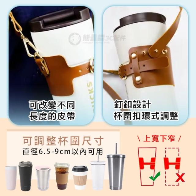 可調背帶 斜背手提杯套 可調式皮革杯套 杯袋 水壺杯套 咖啡杯套 環保杯套 保溫杯套 日雜風 文青質感