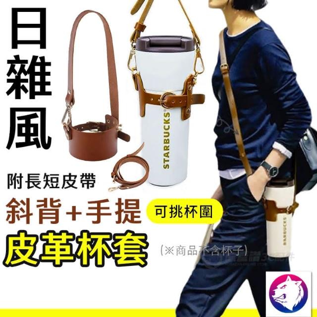 可調背帶 斜背手提杯套 可調式皮革杯套 杯袋 水壺杯套 咖啡杯套 環保杯套 保溫杯套 日雜風 文青質感