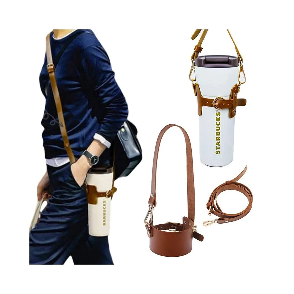可調背帶 斜背手提杯套 可調式皮革杯套 杯袋 水壺杯套 咖啡杯套 環保杯套 保溫杯套 日雜風 文青質感