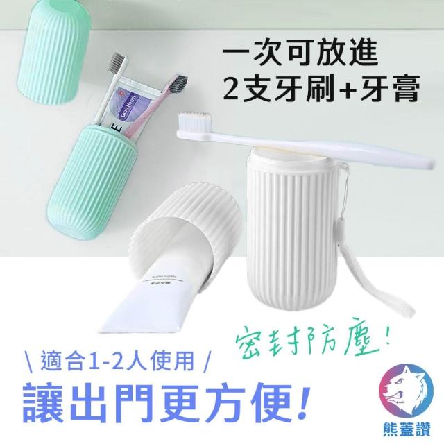 輕便型牙刷牙膏收納盒 漱口杯 旅行組 洗簌杯 牙刷盒 (綠粉白灰)