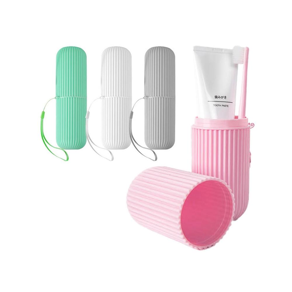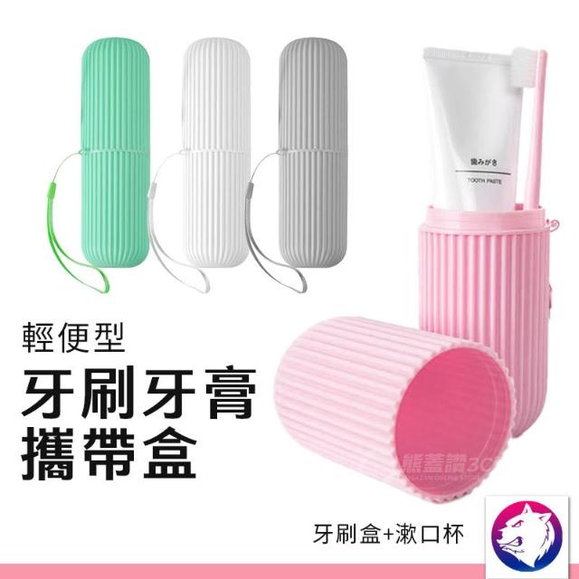 輕便型牙刷牙膏收納盒 漱口杯 旅行組 洗簌杯 牙刷盒 (綠粉白灰)
