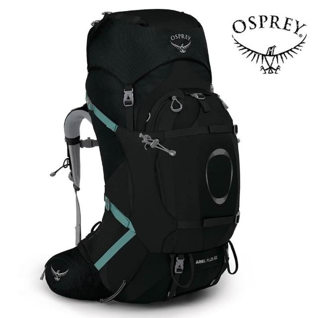 OspreyAriel Plus 60 重裝登山背包 女款 黑色健行背包 自助旅行 徒步旅行後背包
