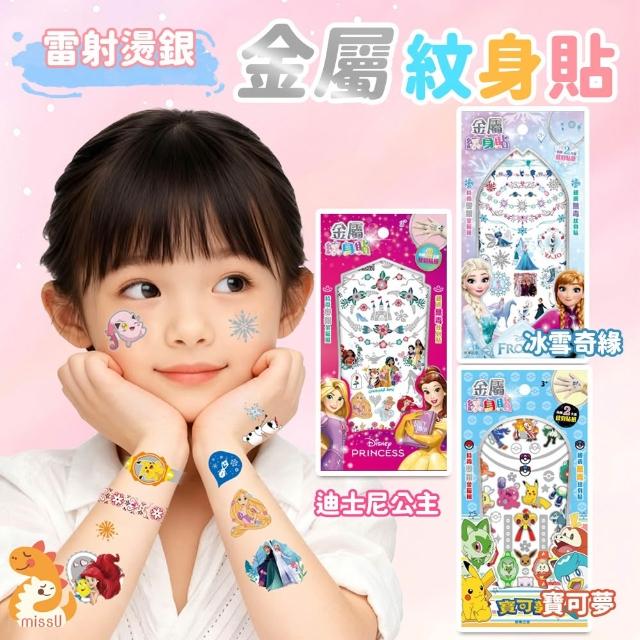 迪士尼/寶可夢金屬紋身貼(2張入) 冰雪奇緣 迪士尼公主 卡通動漫紋身貼 兒童紋身貼 可愛貼紙 RH155