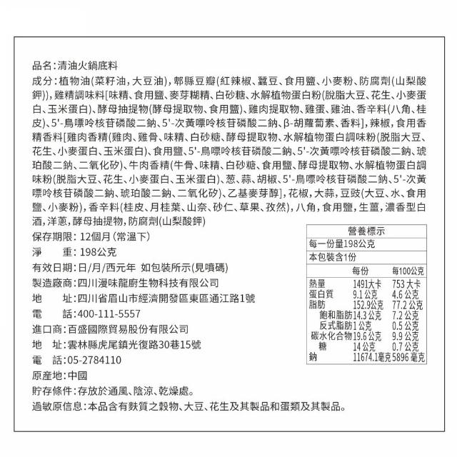 四川老火鍋 清油火鍋底料198g( 口感輕盈 麻辣鮮香 健康低脂) 效期20251208