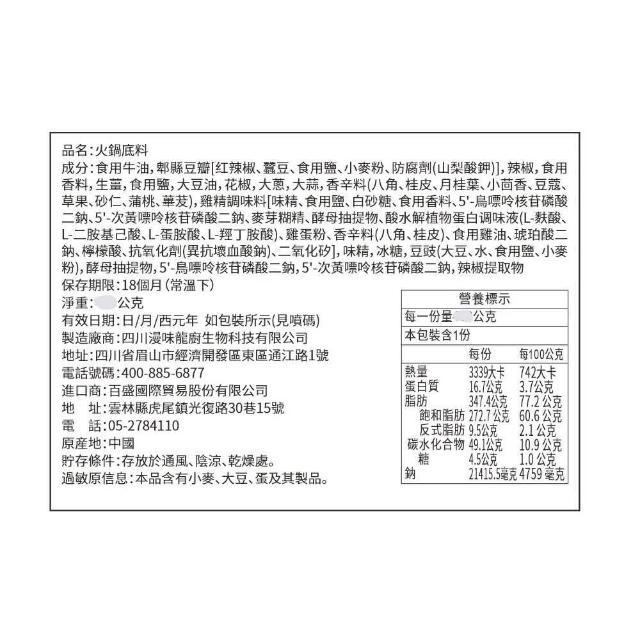 四川老火鍋 牛油火鍋底料500g-家庭號(川味火鍋代表 口味厚重 辛辣 濃香)
