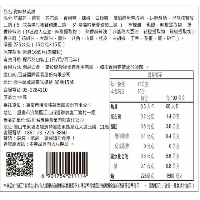 微辣榨菜絲新年分享澎湃包15gx75小包(烏江榨菜 涪陵榨菜 口袋隨身包)