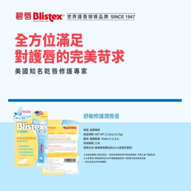 Blistex 碧唇Sensitive 舒敏修護潤唇膏|純淨無添加/4.25g