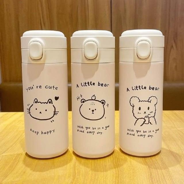 450ml韓國風可愛小熊彈蓋保溫杯 ( 304不鏽鋼保溫杯 保溫瓶 便攜水壺 ) 交換禮物