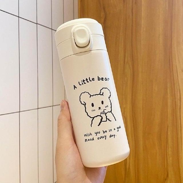 450ml韓國風可愛小熊彈蓋保溫杯 ( 304不鏽鋼保溫杯 保溫瓶 便攜水壺 ) 交換禮物