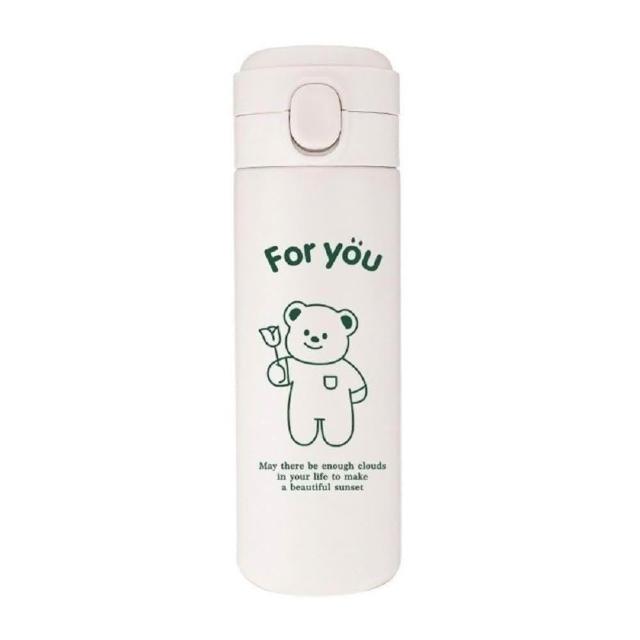 450ml韓國風可愛小熊彈蓋保溫杯 ( 304不鏽鋼保溫杯 保溫瓶 便攜水壺 ) 交換禮物