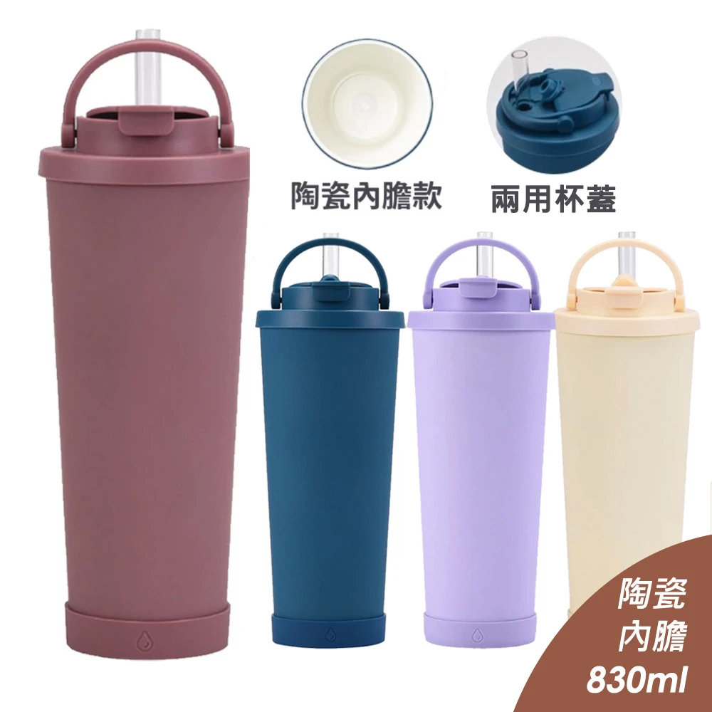 Tritan粗吸管🤞830ml大容量質感陶瓷內膽雙飲吸管杯(保溫保冰 不鏽鋼吸管杯 吸管杯 珍奶杯 ) 交換禮物