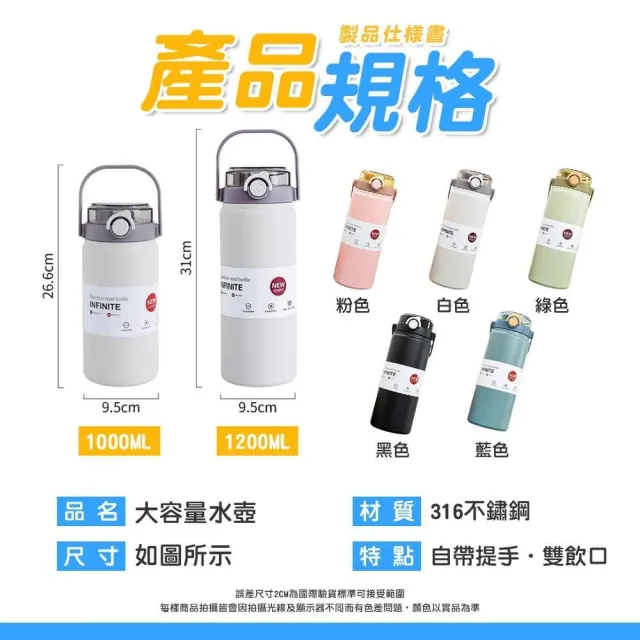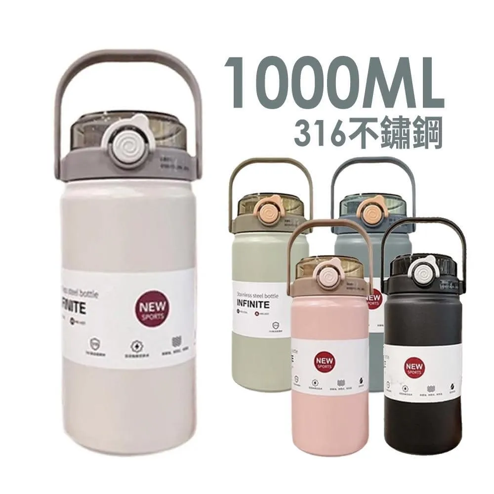 大容量316不鏽鋼水壺 1000ML (提把水壺 隨行杯 水瓶 防漏水壺 保冰保溫杯)