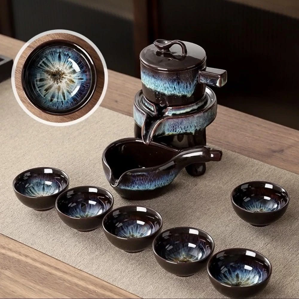 時來運轉自動茶具8件組 含泡茶器+六小杯公道杯 4款任選( 泡茶壺 茶杯 旅行茶具 日式茶具入厝送禮) 交換禮物