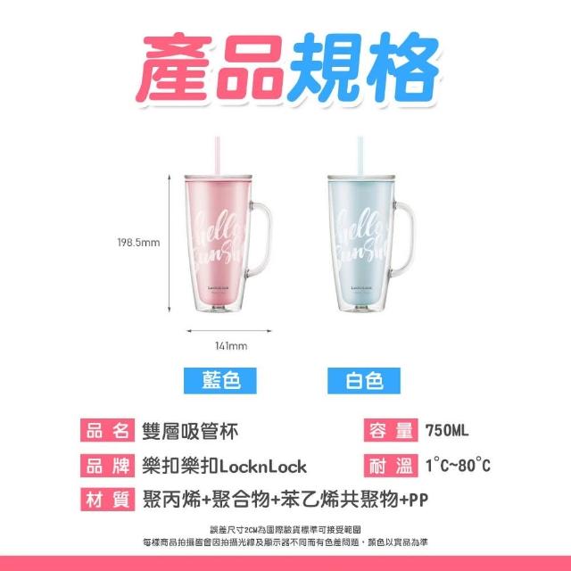 LocknLock 樂扣樂扣雙層把手吸管杯 750ML(雙層吸管杯 隨行杯 水杯 吸管杯 環保杯 聖誕禮物 交換禮物)