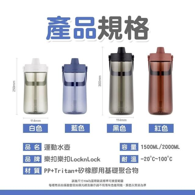 LocknLock 樂扣樂扣1500ml Tritan大容量吸管水壺 Tritan材質 正版授權(手提運動水壺 健身水壺 刻度水壺)